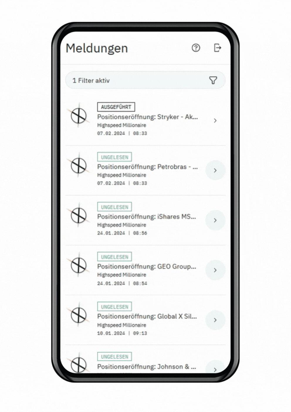 Sie müssen keine komplizierten Orderformulare mehr beim Broker ausfüllen - das übernimmt die App für Sie. Mike Rückert sendet Ihnen einfach den Trade per App auf Ihr Gerät und Sie können ihn mit einem Klick an Ihren Broker übermitteln.